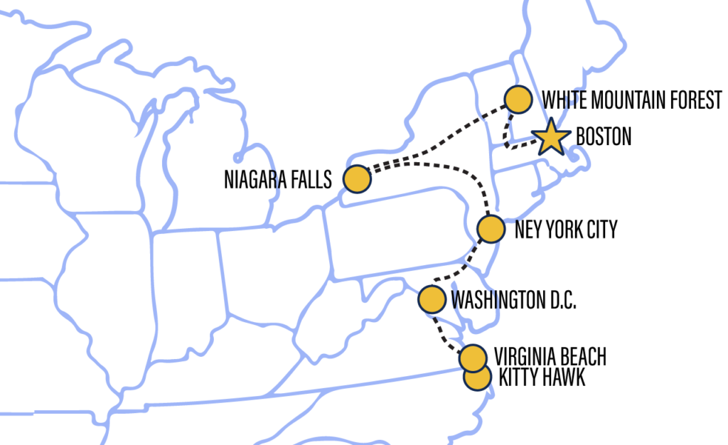Beleef de cultuur van de oostkust van de Verenigde Staten. Bezoek het culturele Boston, het iconische New York, de hoofdstad Washington D.C en de prachtige Outer Banks waar u tot rust kunt komen.